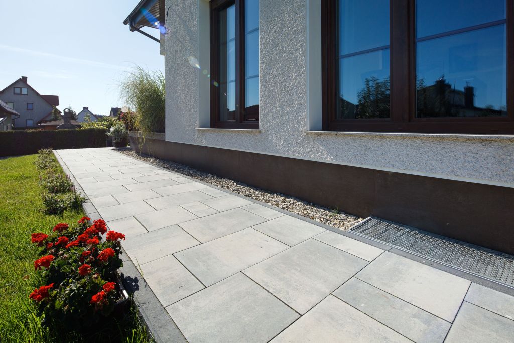 Projektując strefę wejściową warto uwzględnić także obrzeża, które w naturalny sposób będą stabilizować podjazd oraz alejkę, a także oddzielą deptaki od przestrzeni zielonej. Ciekawym rozwiązaniem jest na przykład obrzeże Polbruk Flesz, które oprócz typowej funkcji stabilizującej całość nawierzchni, posiada jeszcze jeden atut. Zostało ono zaprojektowanie w kształcie odwróconej litery „L”, dzięki czemu pod jej daszkiem można umieścić taśmę LED, która na przykład może uruchamiać się na czujnik ruchu lub zmierzchowy. Poprawi to zdecydowanie bezpieczeństwo poruszania się po alejkach wieczorem, a także zapewni ciekawy efekt dekoracyjny. Istnieją również alternatywne rozwiązania dla elementów Flesz. Wśród nich można wymienić minimalistyczne pod względem designu obrzeża Polbruk Modern czy Treo. Obydwa posiadają gładką fakturę i są utrzymane w odcieniach szarości, a więc idealnie pasują do nowoczesnych aranżacji.