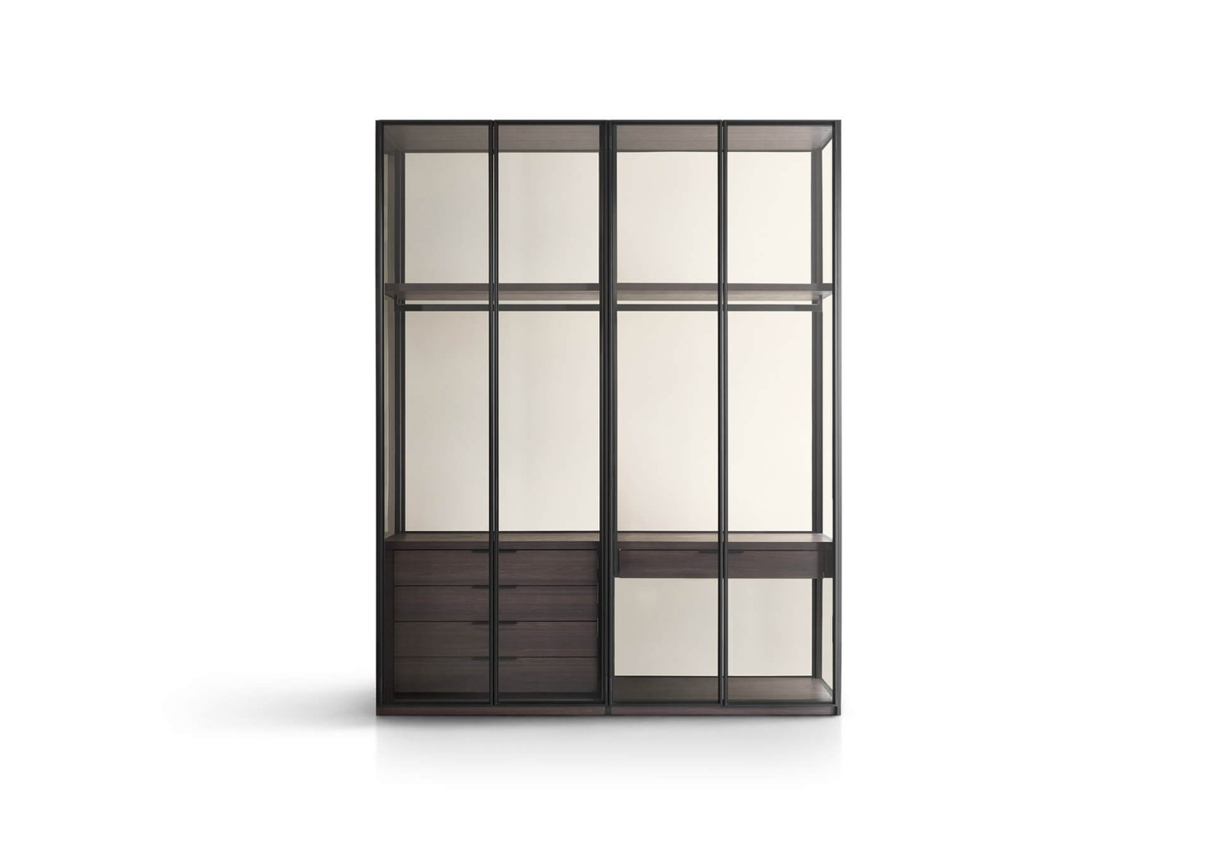 – Design marki Lema jest głęboko osadzony w tu i teraz. Dziś dostrzec można wyraźną potrzebę bezkompromisowego personalizowania przestrzeni. W tym również wnętrza szafy i garderoby, które przestają już być tym, co służy chowaniu, a przeciwnie, eksponowaniu – komentują architektki Karina Snuszka i Dora Kuć z pracowni MoodWorks. Najnowsze modele szaf i garderób pozwalają aranżować ekspozycje budujące opowieść o właścicielu. Ujawniają jego charakter, poczucie estetyki, słabość do kapeluszy, garniturów, eleganckich sukienek, ekstrawaganckich butów. Do monolitycznej szklanej bryły Tian mamy ochotę podejść i zerknąć na ubrania prześwitujące przez jej tafle, bardziej już przypominające eksponaty. Oświetlone od wewnątrz regulowanymi, liniowymi źródłami LED,